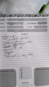 When I think a movie might be special I take out my notebook and write down thoughts that pop into my head. Needless to say I am very left handed.