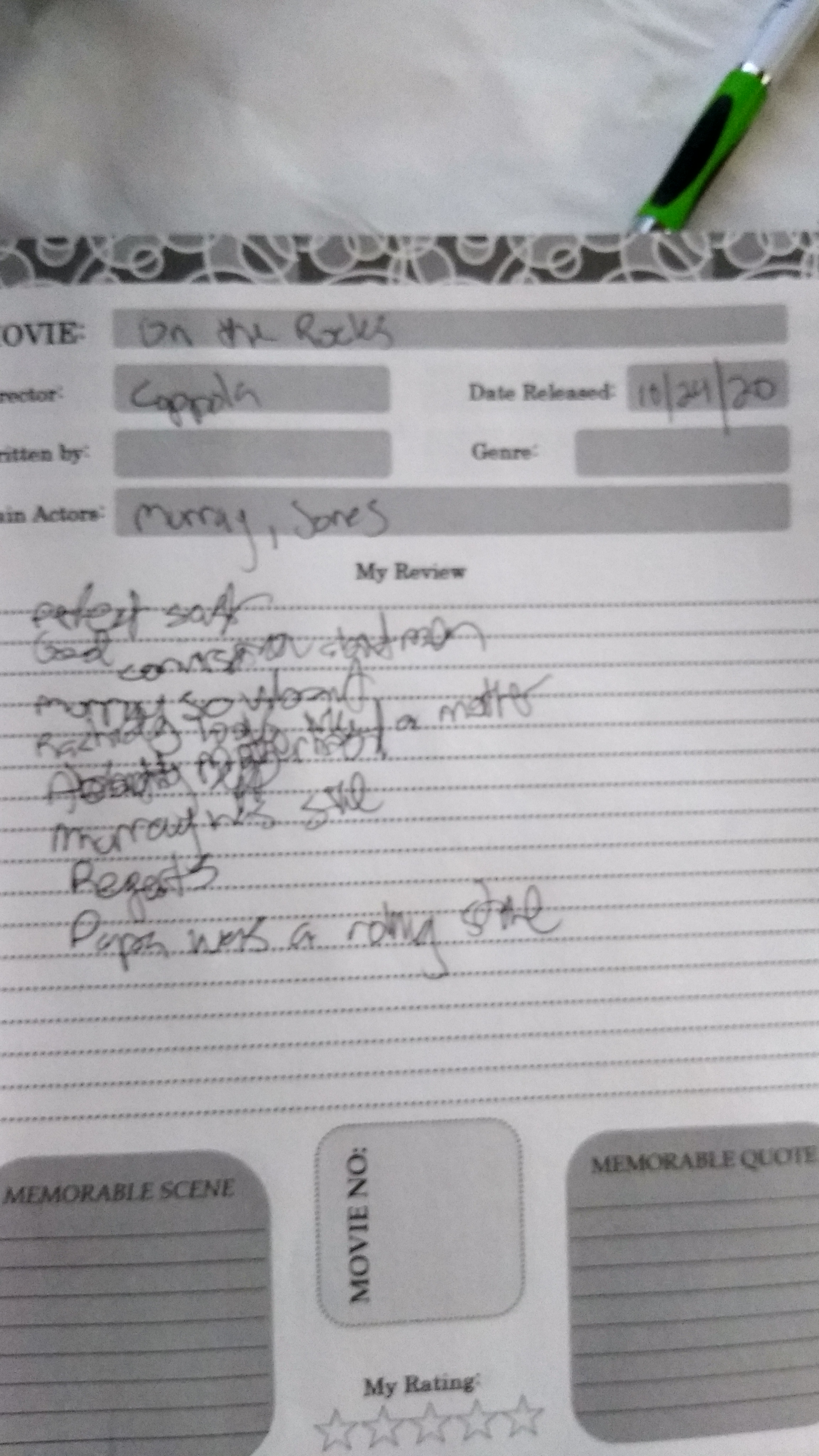 Movie title: On the Rocks